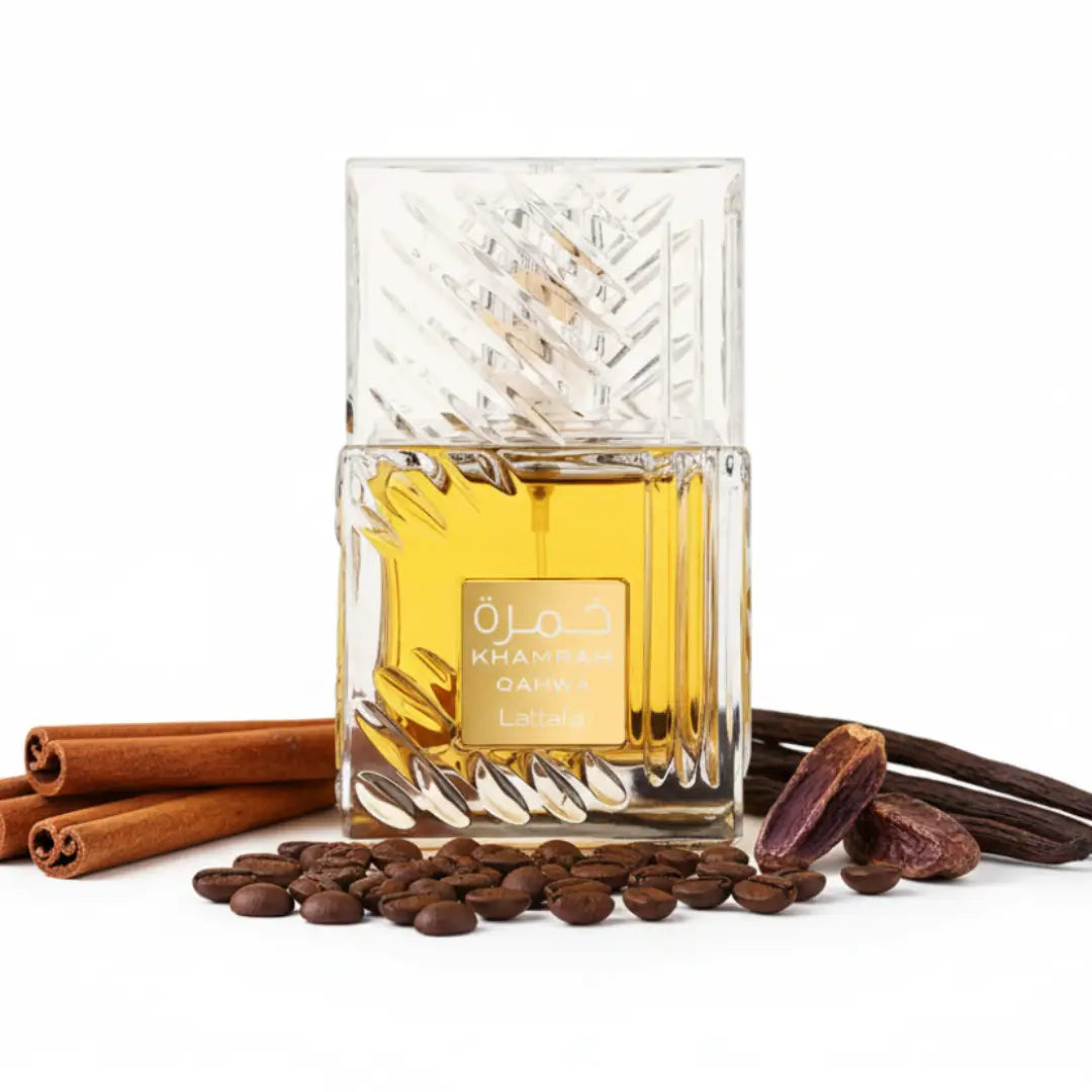 Lattafa Khamrah Qahwa ist ein echt voller Duft, der Gewürze, Süße und Leckereien auf raffinierte Art zusammenbringt. Am Anfang riecht er warm und würzig nach Zimt, Kardamom und Ingwer. Danach kommt eine süße Note von Pralinen, eingelegten Früchten und weißen Blüten. Zum Schluss wird's richtig tief und gemütlich mit Kaffee, Vanille und Tonkabohne. Der Duft passt super an kühlen Tagen oder abends, weil er edel und sinnlich wirkt und lange anhält. Wer Düfte mag, die wie ein warmes Dessert sind, für den ist Khamrah Qahwa genau das Richtige.