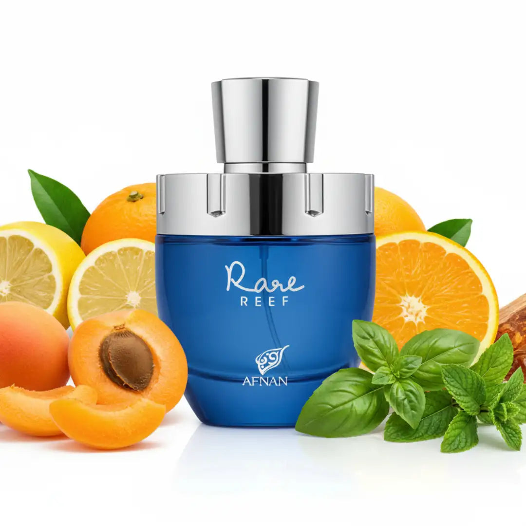 Afnan Rare Reef verbindet frische, fruchtige und aromatische Noten zu einem Duft, der belebt und elegant ist. Die Zitrusnoten von Orange, Zitrone, Minze und Grapefruit sorgen für einen erfrischenden Start, während Aprikose, Rose und Basilikum eine aromatische Tiefe hinzufügen. Die Basis aus Feige, Ambrette, Amberwood und Datteln sorgt für einen warmen, langen Ausklang.