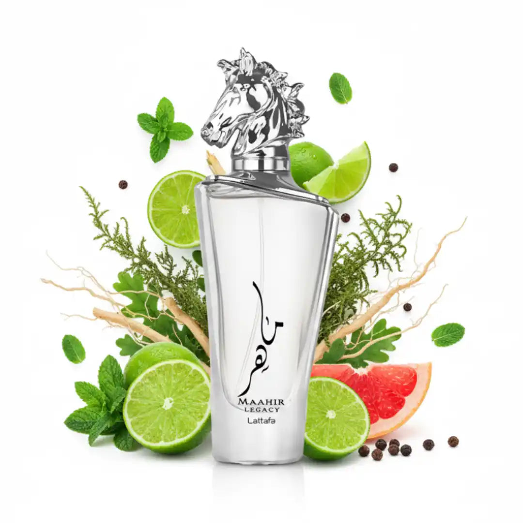 Lattafa Maahir Legacy is een geur voor mannen die fris, citrusachtig en kruidig is. Het is een mix van citrus, kruiden en een beetje pit, wat zorgt voor een frisse en energieke ervaring.