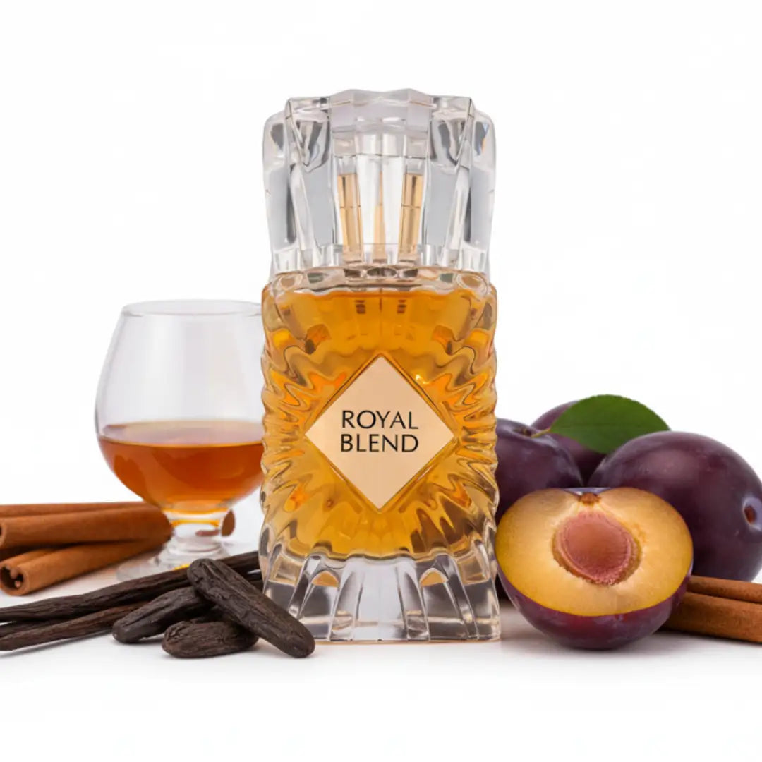 Royal Blend transformeert op elegante wijze van een warme, alcoholische en kruidige opening naar een sierlijke, bloemige en harsachtige middenfase, om te eindigen met een romige, zoete en houtachtige finish. Cognac, kaneel en pruim zorgen voor een bedwelmende opening die zowel verfrissend als decadent aanvoelt. De elegantie van iris en de rijke aardsheid van mirre leveren verfijning in de ontwikkeling van de geur. De basis van vanille, tonka en sandelhout geeft een romige, zoete afwerking die stabiel en lang blijft hangen.