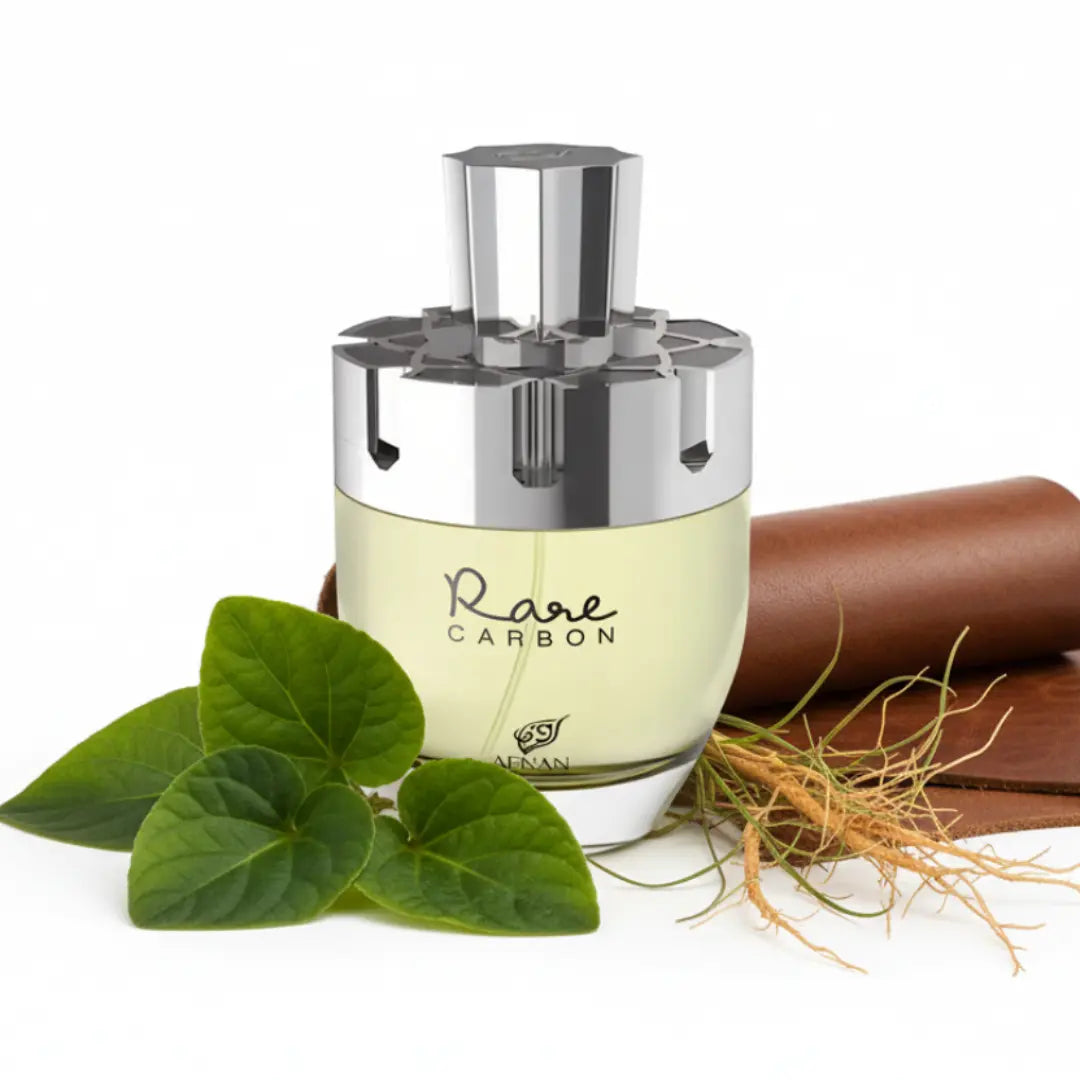 Afnan Rare Carbon is an assertive and sophisticated Leather Fruity scent for men that offers luxurious, smoky, woody fragrances with a warmth theme of strength and personality. Rare Carbon is quality-made for the man who prefers a deeper body scent, and offers a careful balance of the potency of leather married with the finesse of soft florals, spices, and woods but with a sense of daring to a moderate scent that can be used throughout the day.
