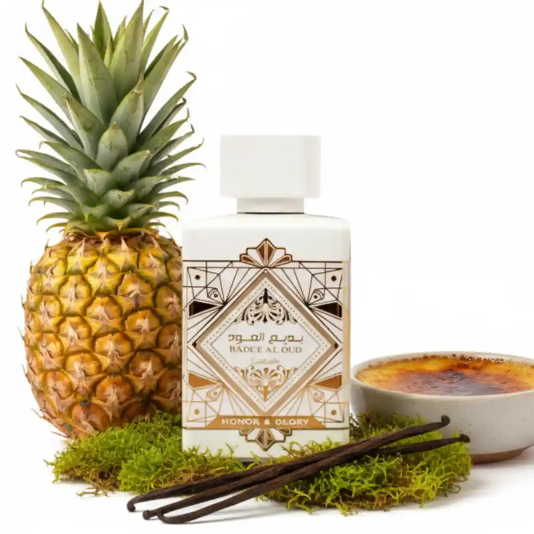 Lattafa Bade'e Al Oud Honor & Glory é uma fragrância que une o frescor frutado, o calor das especiarias e a doçura das notas gourmand, destinada tanto a homens quanto a mulheres. Essa mistura resulta em um aroma envolvente e seguro, ótimo para quem busca uma experiência olfativa sofisticada e de múltiplas camadas, que equilibra calor, doçura e um toque picante.